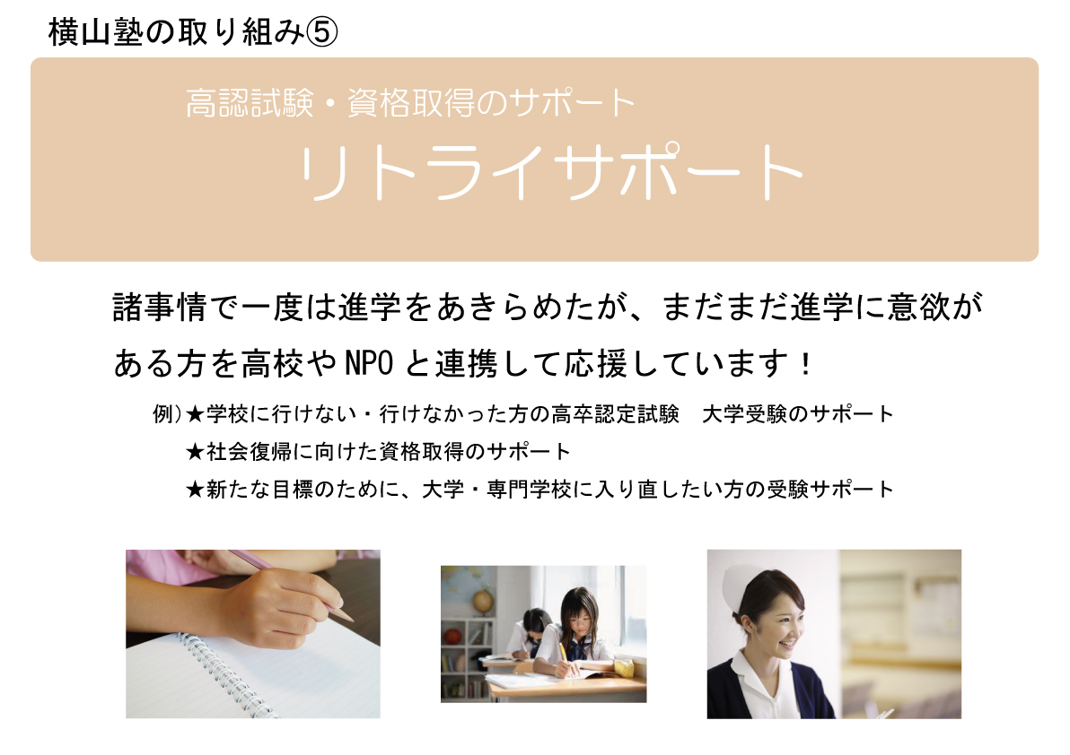 「今だけではなく、その先に活きる力を育てる」 人生は一生勉強。仕事で使うもの、生活で使うもの、日々たくさんの情報を得て学んでいる。そこで、学校の勉強だではなく、早くから将来活かすことのできる目標設定の力、情報整理の力を身につけてもらうため...